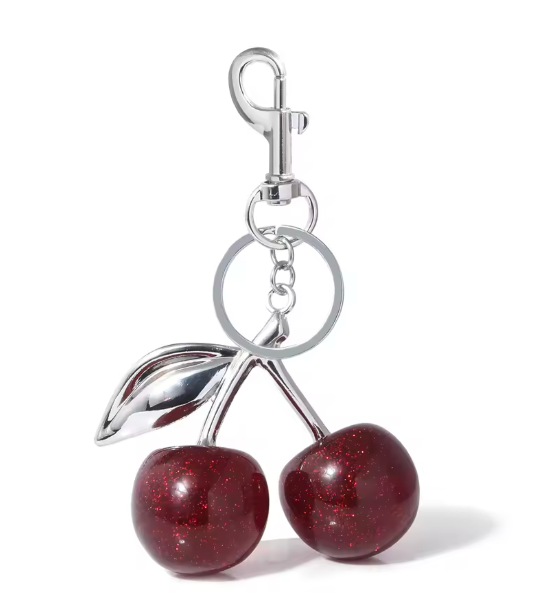Sweet with a sparkling twist! The Lunar Cherry Charm brings a glossy pop of color to any bag with deep red, glitter-flecked cherries and sleek silver stems. Playful yet polished, it’s the perfect touch of fun to elevate your tote, backpack, or keys.